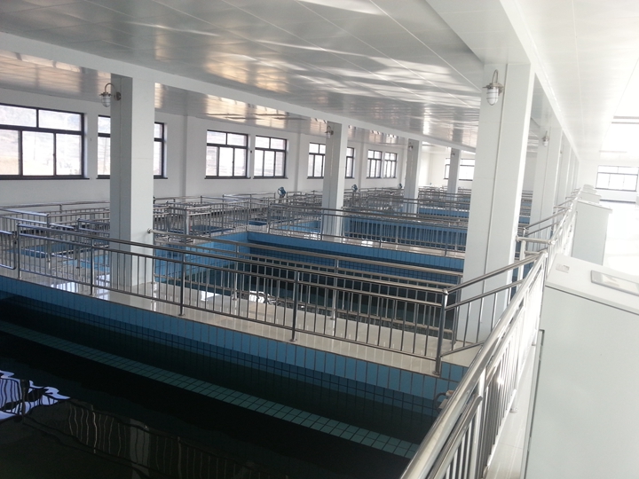 工程規(guī)模:建設(shè)規(guī)模5萬(wàn)m3/d,將現(xiàn)有折板反應(yīng)+斜管沉淀+普通快濾池工藝(2.5萬(wàn)m3/d ),隔板反應(yīng)+斜管沉淀+無(wú)閥濾池(1.9萬(wàn)m3/d ),水力循環(huán)澄清池+無(wú)閥濾池(0.6萬(wàn)m3/d )三個(gè)序列凈水設(shè)施整合改造為以平流沉淀池+V型濾池為主的凈水工藝,出水水質(zhì)滿足《生活飲用水衛(wèi)生標(biāo)準(zhǔn)》(GB5749-2006)的要求。