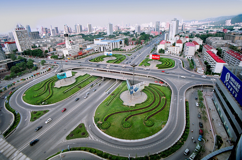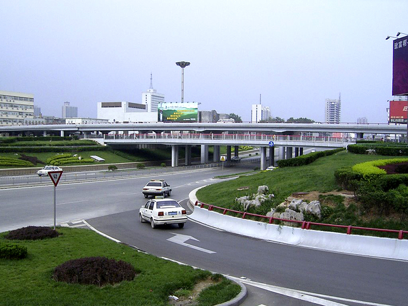 為苜蓿葉形三層互通式立交,兩條主干路均寬 50 米,橋梁上部采用簡支箱梁,寬腹 T 梁及三孔連續(xù)板結(jié)構(gòu),預(yù)制安裝,施工簡單;下部蓋梁為暗藏式,墩身采用蝙蝠式柱,外形美觀;基礎(chǔ)為鋼筋砼擴(kuò)大基礎(chǔ)及灌注樁;該立交充分利用原有排水系統(tǒng),雨污水完全自流,經(jīng)濟(jì)合理。榮獲市長金杯獎,被評為泉城十大景觀之首。